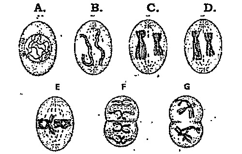 6. les schémas ci-contre représentent une cellule en méiose. Le schéma F indique :