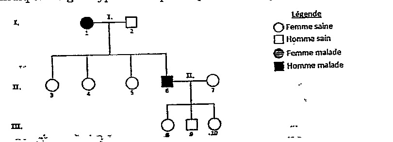 6. Le schéma ci-après représente une famille souffrant de l'hémophilie. Indiquez le génotype du couple II.