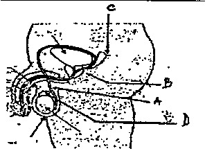 6. Sur le schéma de l’appareil génital de l’homme ci-contre représenté, le point C remplace :