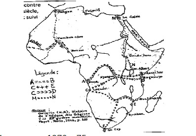 30.Sur la carte muette d’Afrique ci-contre relative aux explorations du 19ème siècle, la lettre C vers D désigne le trajet suivi par l’explorateur :