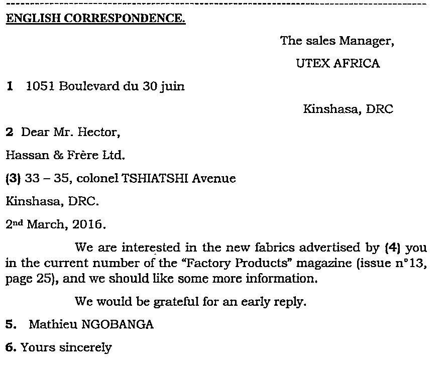 1. “Imagine that you are a big boss and you run business. Your company will be certainly organized in different departments. The one who wants to sell anything will address his letter to the….. Department”.