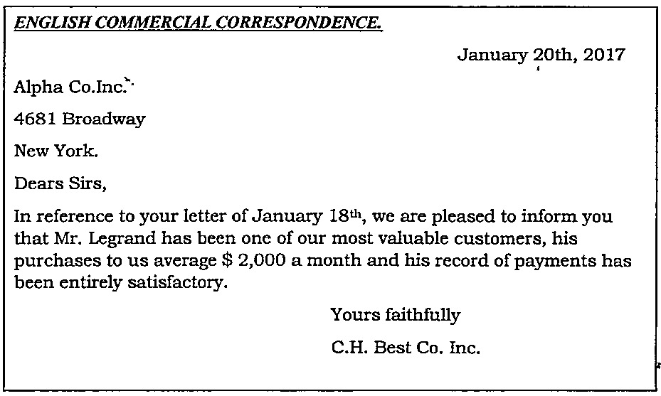 8. The salutation which agrees to a trader is: