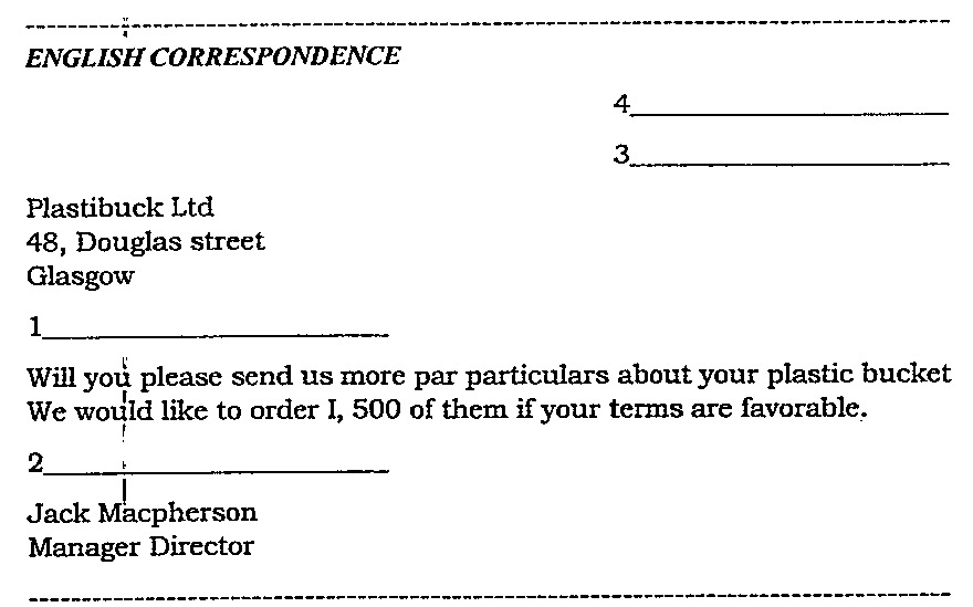 Complimentary close → formule de politesse finale (Yours faithfully).