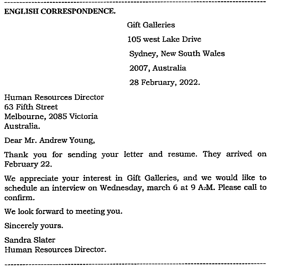 4. The above letter is: