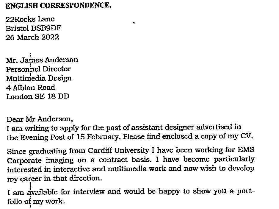 une lettre de candidature (application letter).