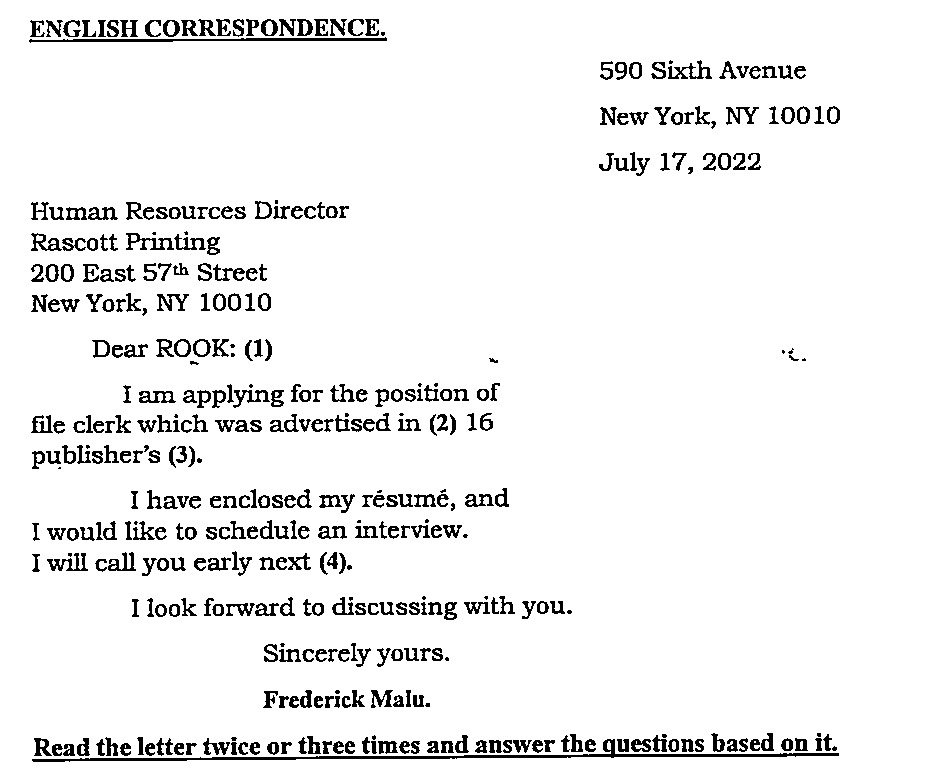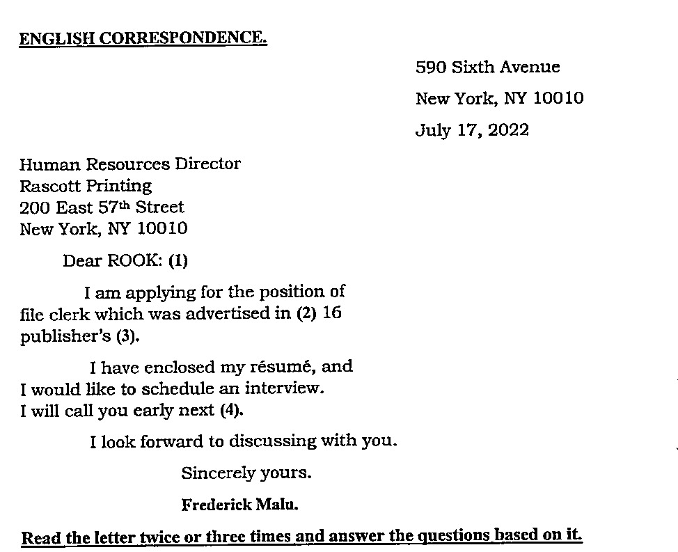 “I am applying for the position of file clerk which was advertised in (2) 16 publisher’s (3).”