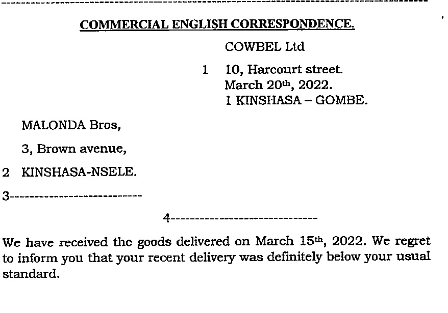 Dans une lettre commerciale, la partie qui contient l’adresse complète de l’expéditeur s’appelle :