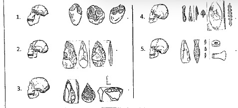 11.Indiquez le schéma qui illustre le crâne et les outils de l’homo sapiens sapiens.