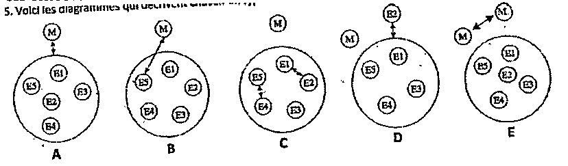 41. Voici les diagrammes qui décrivent chacun un type d’interaction en classe.